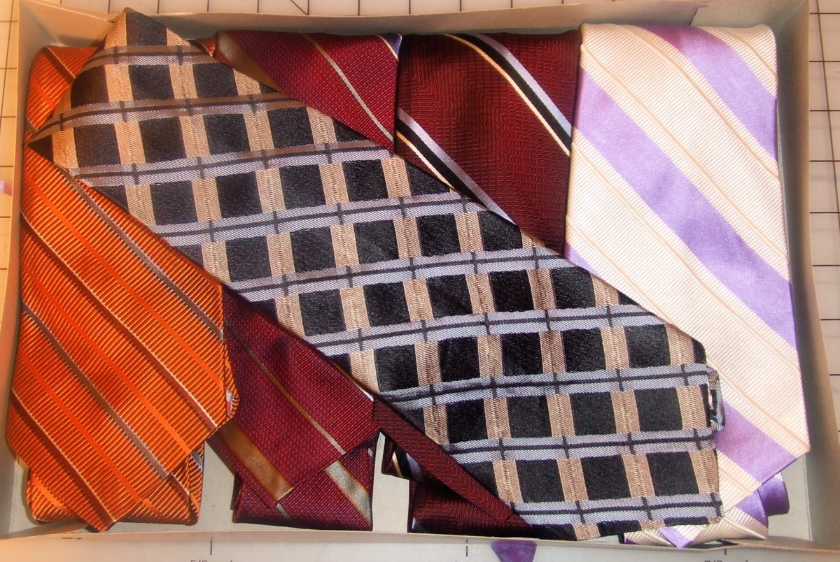 It took me a long time to finesse these in to the box. Sooo, that’s where they are being photographed from. The ties are beautiful and I’m very proud of them. My friend Andy tried a few one over the weekend and told me they looked and felt as good as an expensive department store tie.