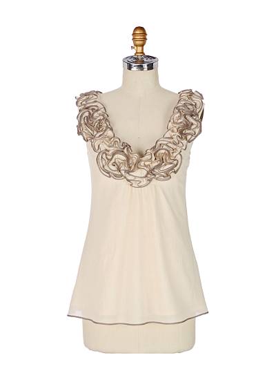 I got out to the mall yesterdy and wanted to show a couple of fun details from the Anthropologie stuff I tried on. The first is this ruffled tank called the Cherimoya Blouse. It retails for $118 on the Anthropologie site.