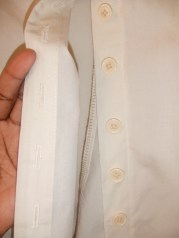 I left off the neckline facing because I couldn’t understand the directions and how it was supposed to go in. I also scrapped the drafted right fold, left fold, fold facing, etc. lines because when I followed the directions, the hidden button placket was two inches wide. HUGE.
