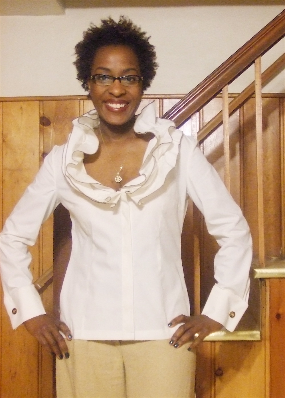 I think this is a gorgeous blouse and it frames your lovely face perfectly. I love the serged ruffles. It’s a whole lotta look perfect for a whole lotta woman!