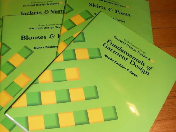 At anyrate, when this week’s delegation came to Baltimore for three days, with them came four of the five English languageBunka Fashion College textbooks. Ginevra first tipped me off that they were coming and Christina let me know they were out. Oh, BTW, Bunka is pronounce Boon-ka. These look small in the photo, but they are 8×11 size (really A4, but whatev).