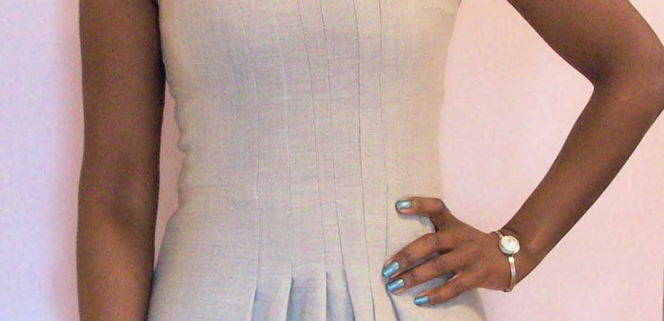 That grey dress fits you perfectly. As for those pleats, pick one length and make the rest match. No? They seem to be noticeable in the pix. (At least you’re sewing. I still have fabric in the bags!)