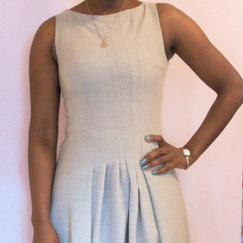 The dress is lovely! Don’t worry about the pleats evenness–the only one that will know will be you (and, well, readers, but we promise not to tell and we all understand completely).