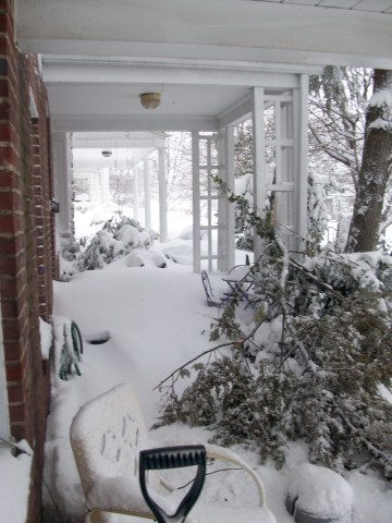 And we are supposed to get MORE snow tomorrow. My sister’s house is very similar to yours and her very tall blue spruce tree fell down. Evidently the roots were loosened by a wet autumn, and the weight of the snow was too much for it. So, it’s just bizarre!