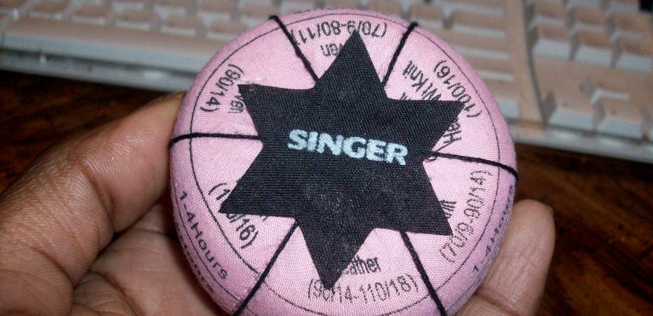 I really need one of these. I tend to stick the needle on my sewing table and then I forget about it. Then I can’t remember what size it was or if it was a sharp or ball point, etc. I believe this pink tomato would solve my problem! I would just have to remember to use it!