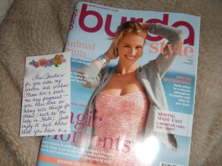 Another reason I say ‘People Are Awesome’ is because Karen in Ft. Worth sent me the May Burda. This one was very sad for me to lose because I made the cover dress. She attached a note that made me cry a little. So, Karen, THANK YOU. And again I say, ‘People are Awesome’.