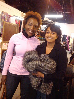 We talked her into the $10 faux fur remnant she’s holding. It’s really really nice. I actually night go back for some myself. It must be made into a capelet, right? I suggested the No. 118 from the September 2007 Burda, but think it may have too many seams for faux fur.