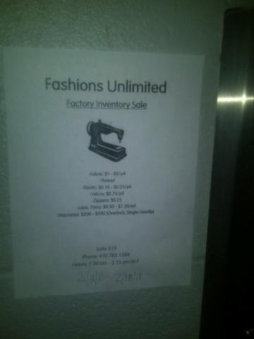[…] two years ago when I went to Fashions Unlimited factory warehouse sale in Pigtown? Well, it’s […]