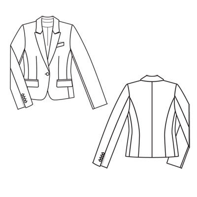 I put a few hours into my tuxedo jacket jacket on Sunday. These will match the tuxedo pants that still need hemming. The blazer pattern is from the February 2011 Burda, #126. I chose it for the narrow lapels, deep neckline, and two piece sleeve. I was quite happy with progress until I realized that I had done the pockets differently than drafted.