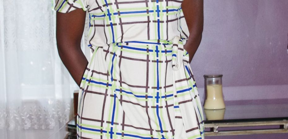 Great job matching the plaids. You look so cute in that dress. I have a trick for matching plaids after I cut out front I take crayons and on seam line draw main colors of plaid on pattern. Then match back and continue the plaid on back pattern with crayons. Then you just line up crayon marks to matching colors on plaid. It works well.