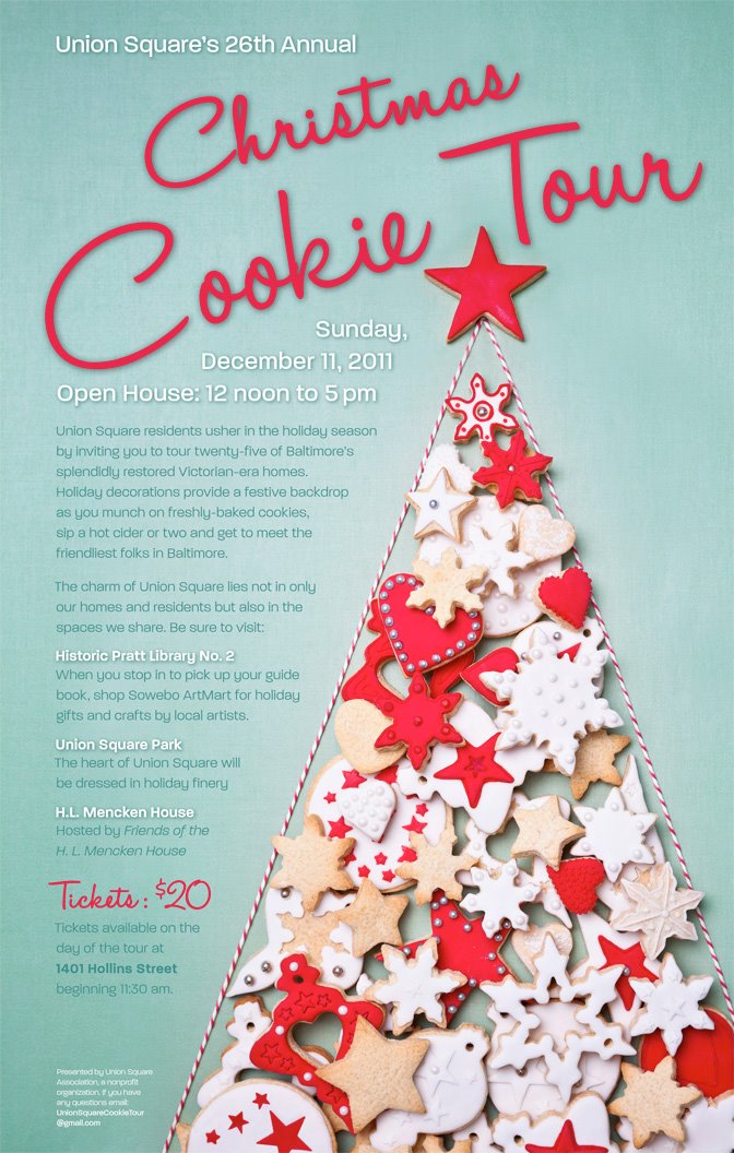 Trena may have the White House as part of her holiday experience. But, I’ve got Union Square and the H.L. Mencken House around the corner :-). In addition to the Christmas Tree Farm experience, my holiday-themed weekend included the 26th annual Union Square Christmas Cookie Tour.