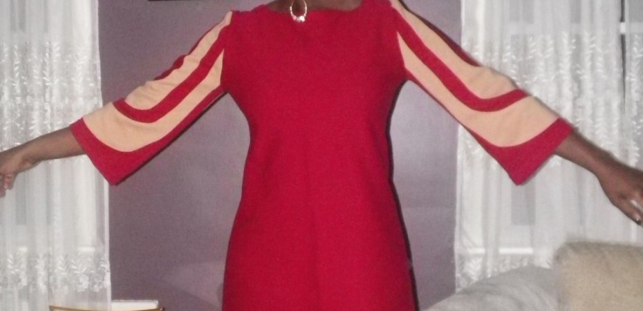 I didn’t find the dress tentlike at all. Perhaps because I’m sewing a size I wore a few years and pounds ago (!). But, more likely because I measured out the pattern 🙂 The color of this double knit is a blood red. This piece is another gem from the Carol Collection. The color is brighter in these photos because my beloved SLR is in the shop. So, I’m working with a point a shoot for the next few weeks.