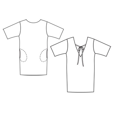 Oh, here’s a photo of the back. I omitted the ties (and the pockets). I can kind of picture metal chains instead. Hmm, maybe a T-back shirt in black too (my bra definitely shows without). Ooh, a lacy T-back would be hot.
