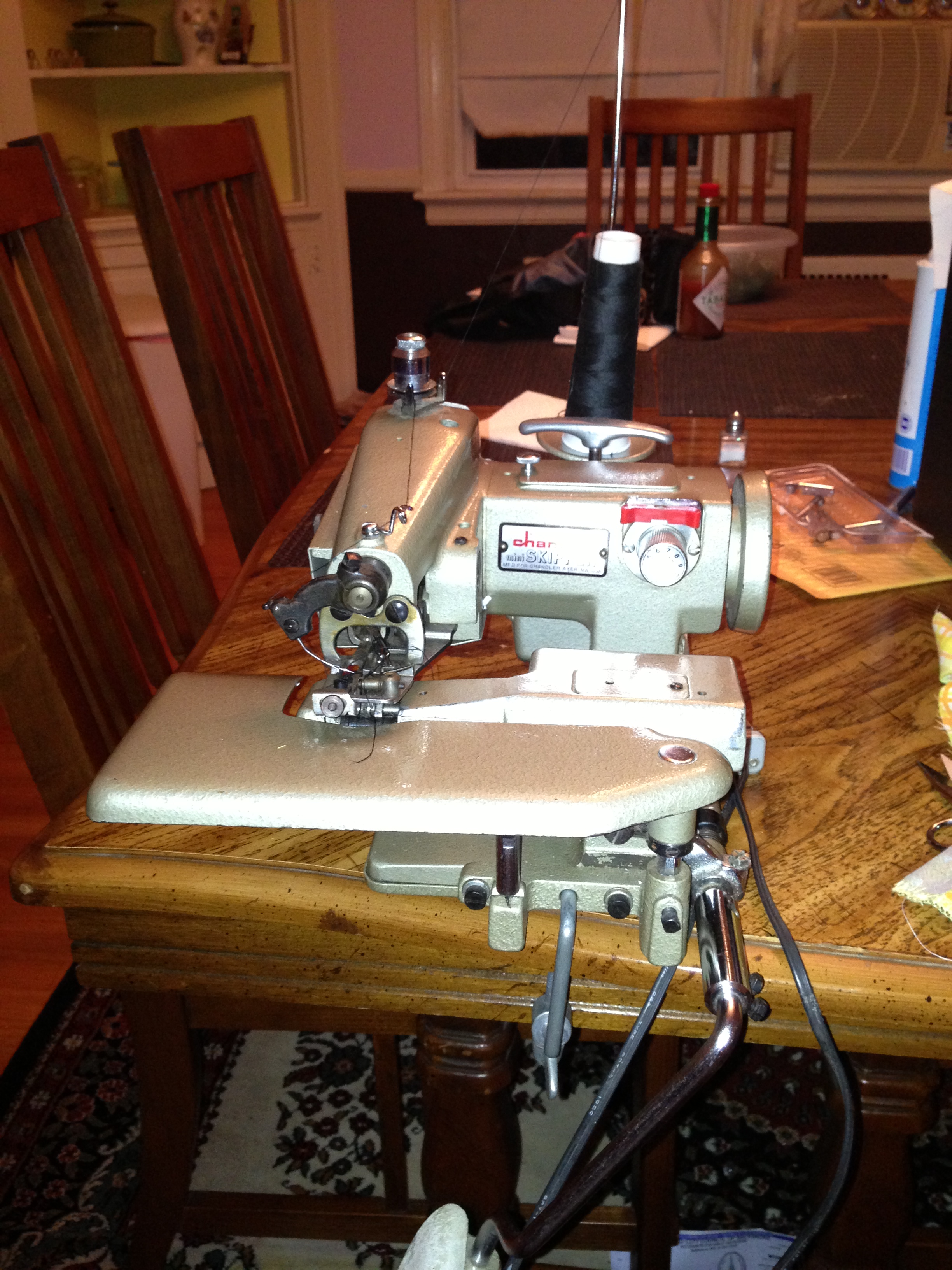 So cool! And omg, you got a good deal! I used to work for an industrial sewing machine supply company, so I saw similar machines daily. They are tough to thread! Have fun with your new machine!