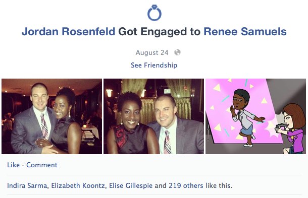 I’m a little late to the party but the sentiment is sincere, CONGRATULATIONS! You will never have to try to answer that dreaded, unanswerable question “Why isn’t a nice/cute/funny/talented/smart girl like you married?” Wishing you both a happy future!