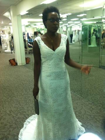 She did a ROCK STAR job on this bra!!! You can’t even tell it’s been sliced and diced. Here’s me trying on the altered version in the store. I was feeling supa cute after three weeks of strict Dukan Dieting. Yes, I became a bridal dieter and it was TOTALLY WORTH IT. My breath was terrible, I was irritable and I had dreams of cold glasses of reisling. I was so very sick of tofu and fish. Like, I can’t even look at fish right now without shuddering. But, I dropped the weight and felt GREAT on my wedding day. I have since resumed my life of fried food, cheese, wine and carbohydrates.