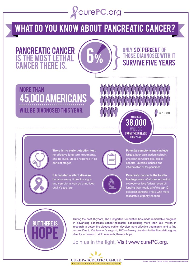 Pancreatic Cancer is one of the most challenging diseases physicians face today because it responds poorly to treatment and quickly spreads to surrounding organs. This is why November is so important: to raise awareness around early detection and prevention as well as highlight current research to help find a cure for pancreatic cancer. from here