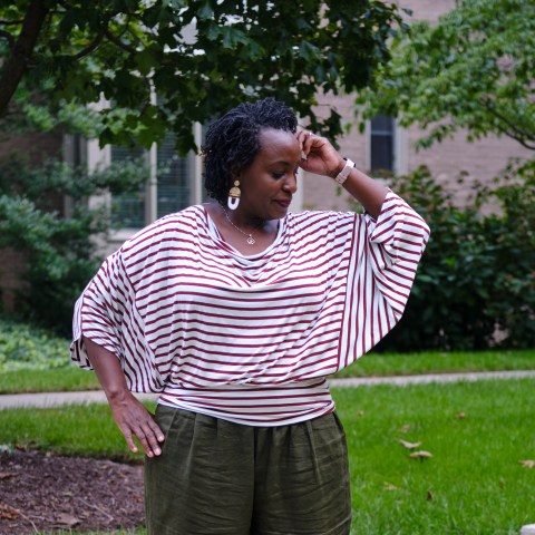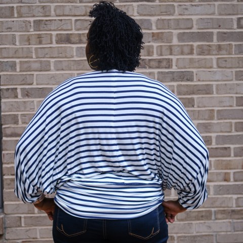 I’ve followed your posts for a while, and the dolman striped top is you, girl. It really seems to enhance your figure, and is probably very versatile for everyday cuteness.