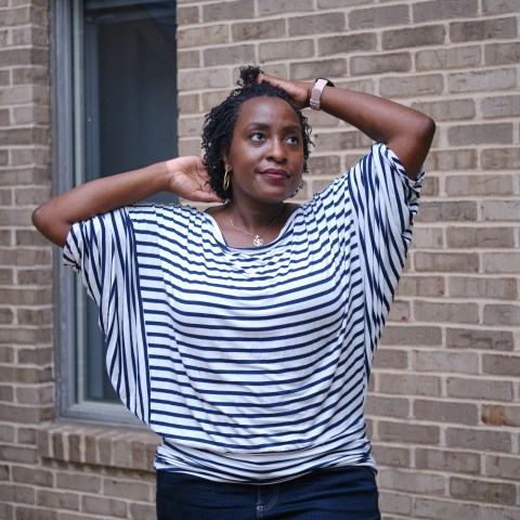 I just shimmied, lol. Thank you! I think the stripes are good because they are high contrast which works well with my coloring. The dolman does what I read it would! Even big and fluid, it falls nicely. I would never have tried this if I hadn’t read it dolmans were good for highlighting waistlines.