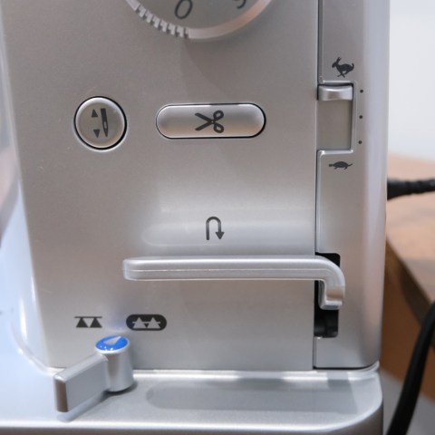 A feature I deeply wanted was to automatically cut thread. On the TL Series, you can cut your thread via the pedal by pushing down on your heel. There’s also a speed control/ governor button on the machine front for cutting thread.