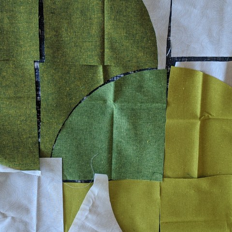 My friend Mary chose my fabric for me since I’m not an active quilter and selecting like this is just too much choice for me. I didn’t have any issues with the curvy bits, it’s really just like setting in a dozen sleeves. Nor more than three pins per curve — if I bothered using pins at all.